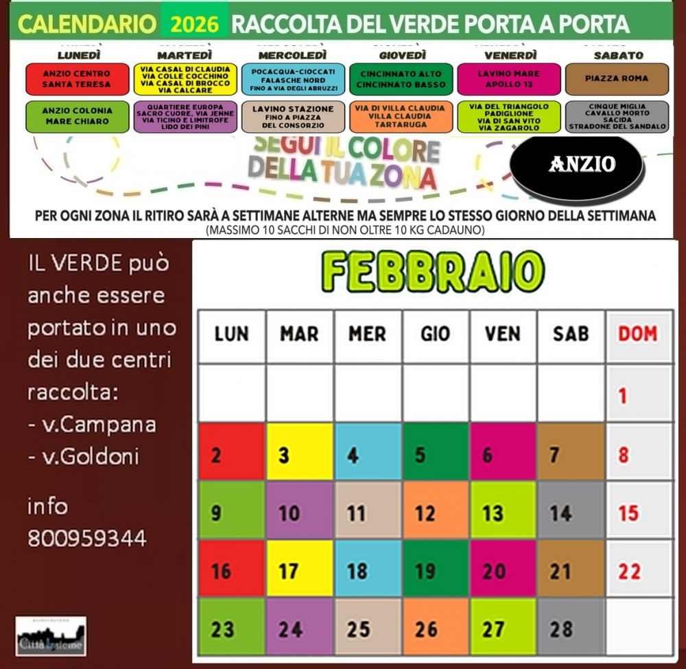 Anzio, raccolta verde a domicilio, ecco i turni di FEBBRAIO 2026