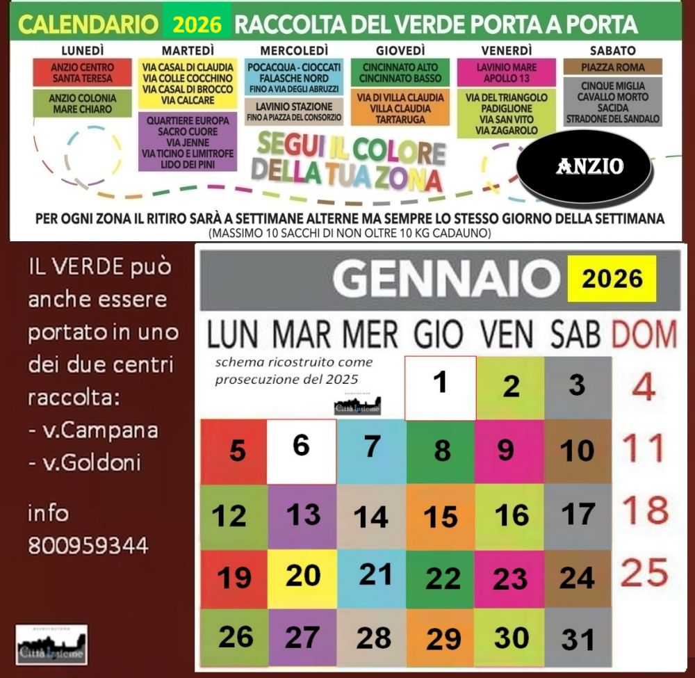 Anzio, raccolta verde a domicilio, ecco i turni di GENNAIO 2026