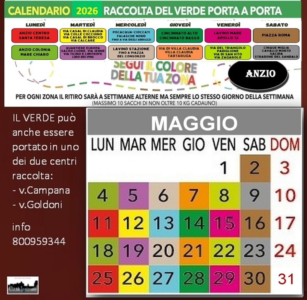 Anzio, raccolta verde a domicilio, ecco i turni di APRILE 2026