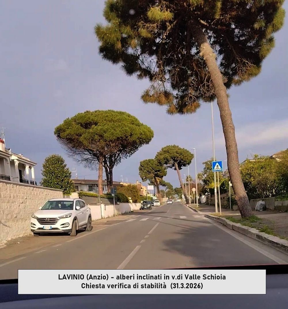 Alberi pendenti a Lavinio: chiesta verifica di stabilità.