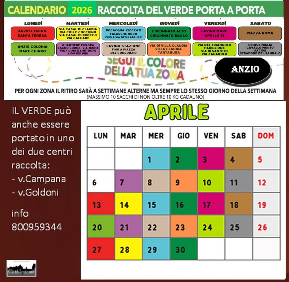 Anzio, raccolta verde a domicilio, ecco i turni di APRILE 2026