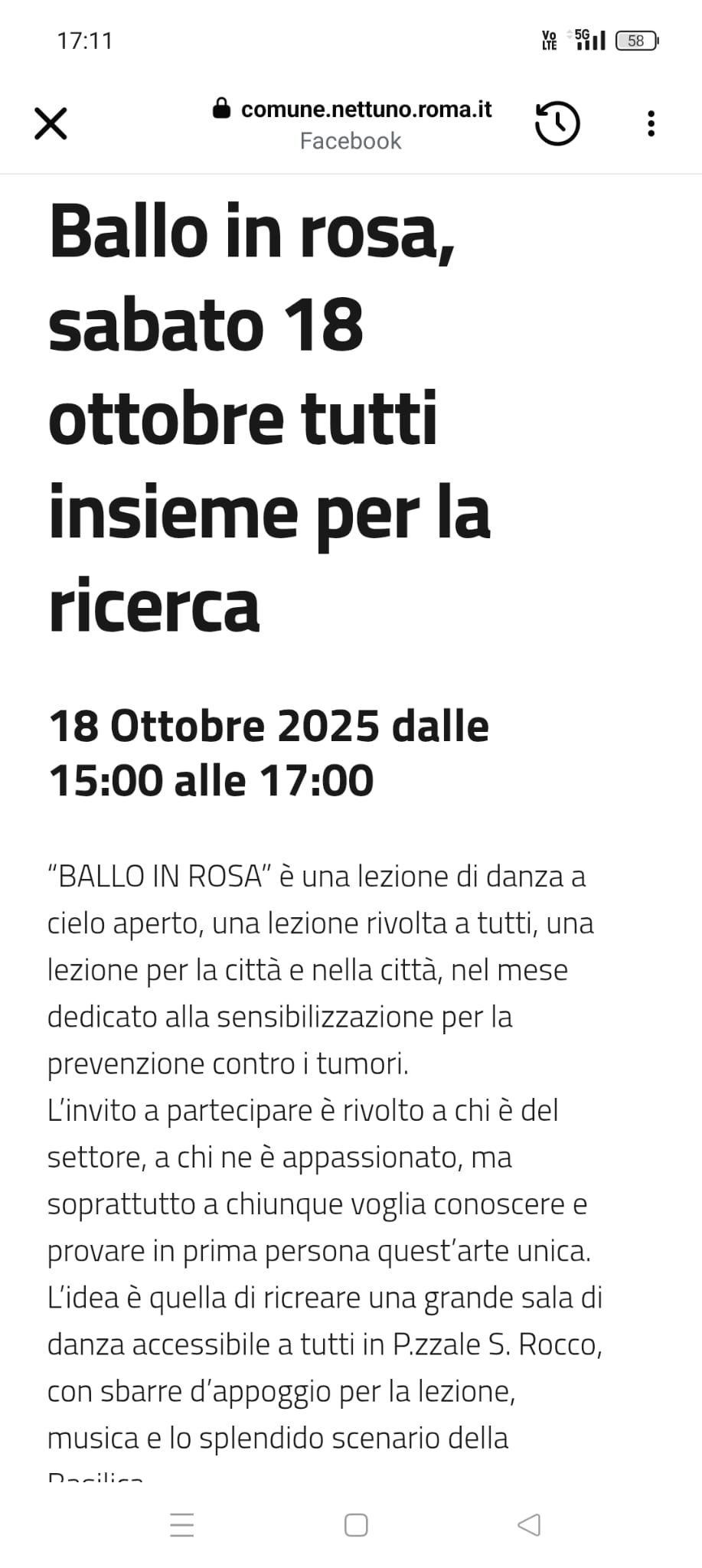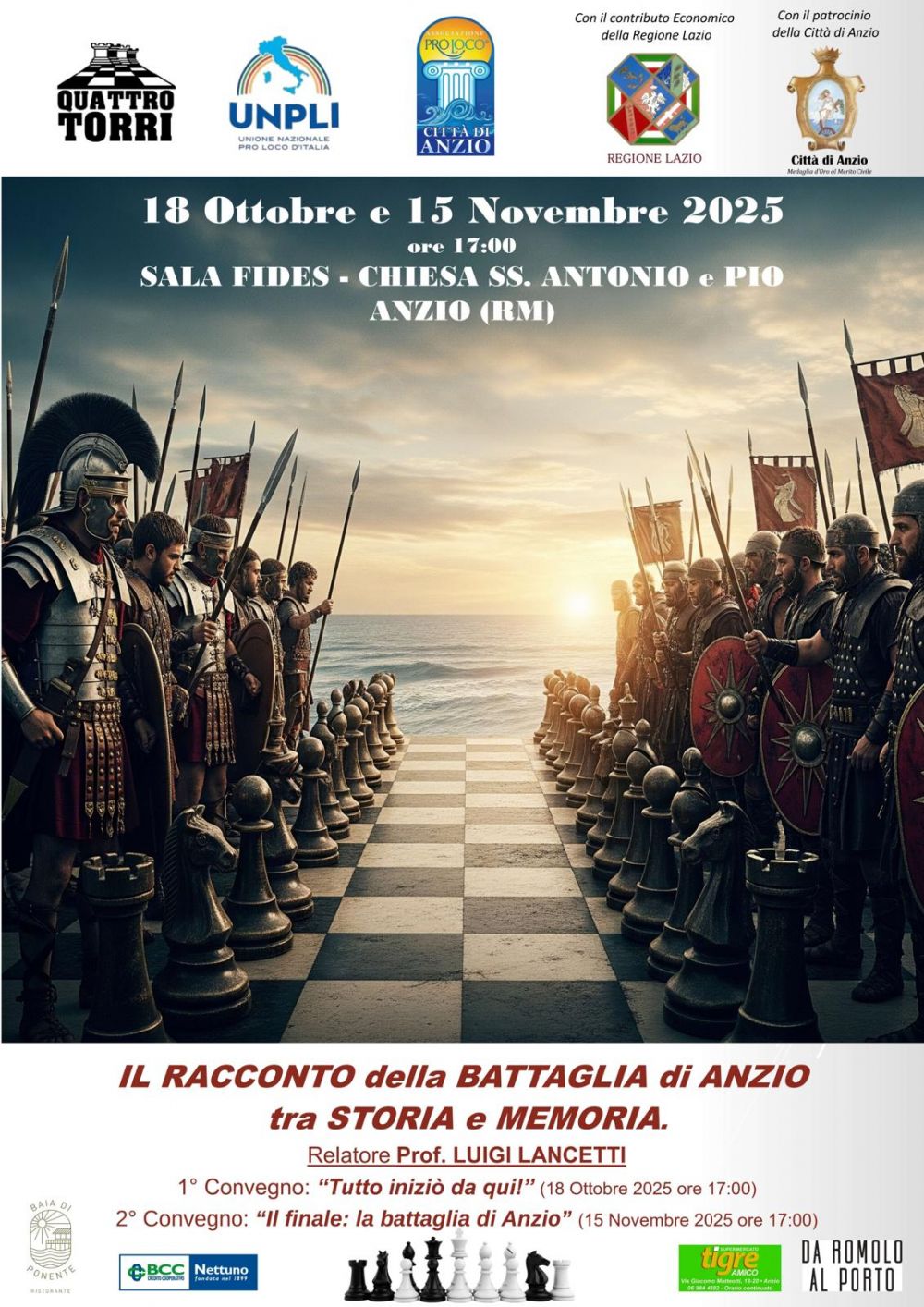 15.00 esibizione di danza - p.S.Rocco, Nettuno17.00 conferenza sulla Battaglia di Anzio - parrocchia p.Pia, Anzio