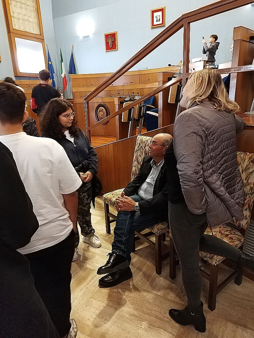 Una tenerezza vederli sciamare fra i banchi del Consiglio comunale, prima esitanti poi più sicuri, confortati dall'accoglienza dell'Assessore alla Cultura Roberto Imperato. A lui gli studenti hanno anche fatto una mini intervista raccogliendo materiale da portare in classe per rielabolarlo con le foto e farne una "notizia". Bravi !