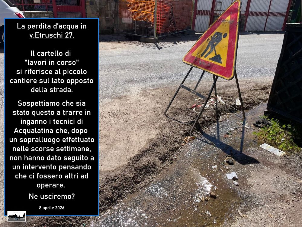 Magari la ragione è proprio quella, forse un po' stupida, che ci è venuta in mente vedendo il cartello "lavori in corso" piazzato sul fiumicello: un gesto in buona fede di qualcuno che ha usato un cartello di altri lavori lì adiacenti per proteggere i passanti dalla fanghiglia che si è creata, ma che però potrebbe essere stato interpretato da Acqualatina come il segnale che ci fosse già qualche altro ente ad operare sul posto annullando il suo intervento.