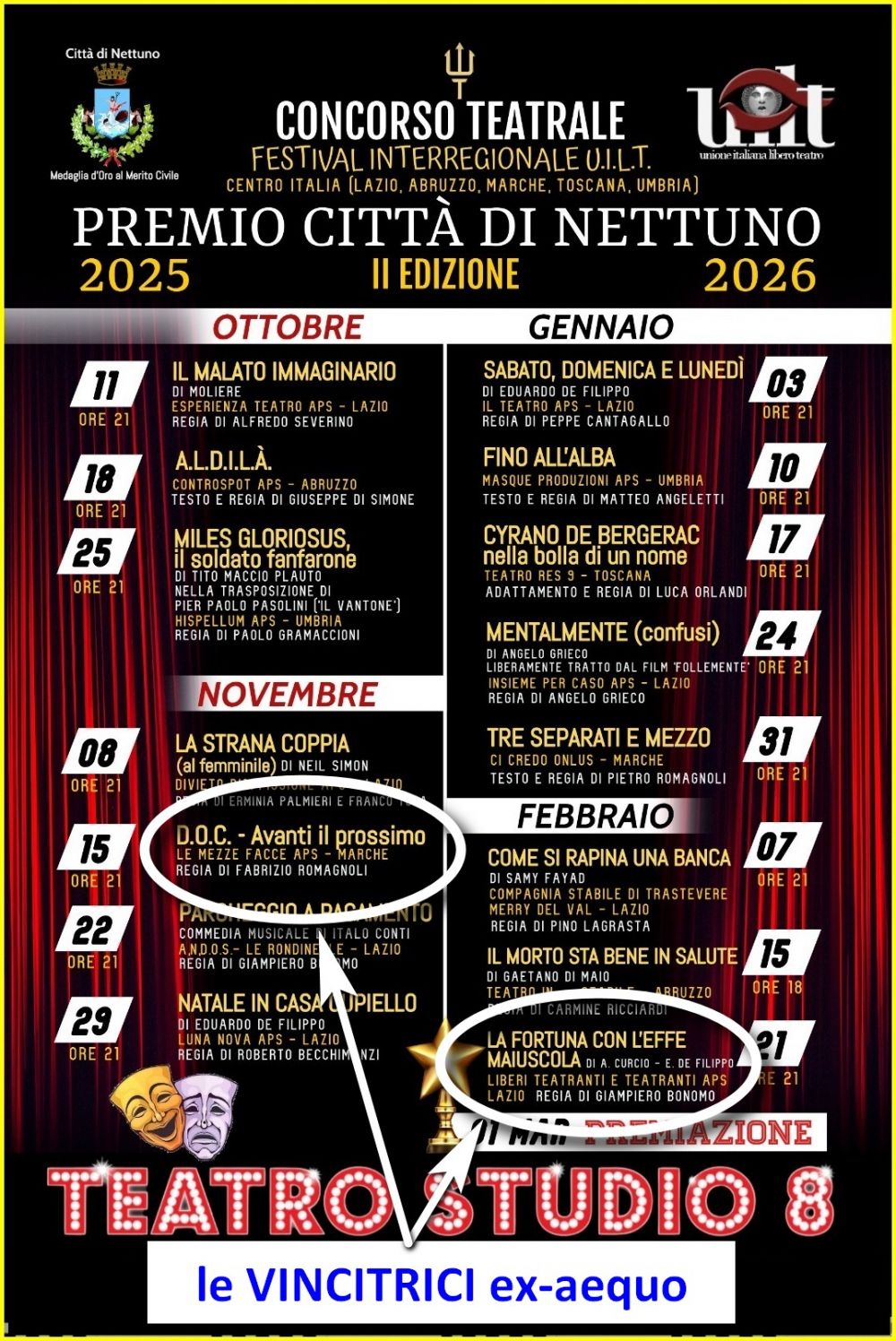 Due commedie vincono ex-aequo il Concorso teatrale dello Studio8.