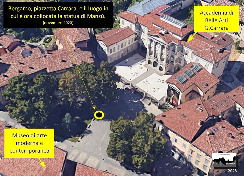 Una delle grandi statue bronzee dello scultore bergamasco Giacomo Manzù, quella intitolata "Grande cardinale in piedi", è ora installata in una scenografica piazzetta di Bergamo.